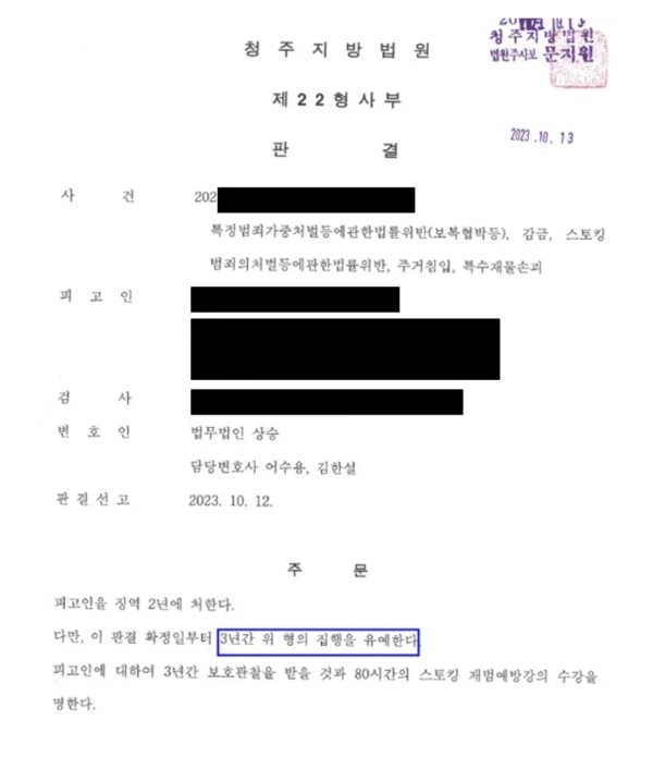 스토킹 피해자를 설득하여 합의를 이끌어낸 사건 - 집행유예